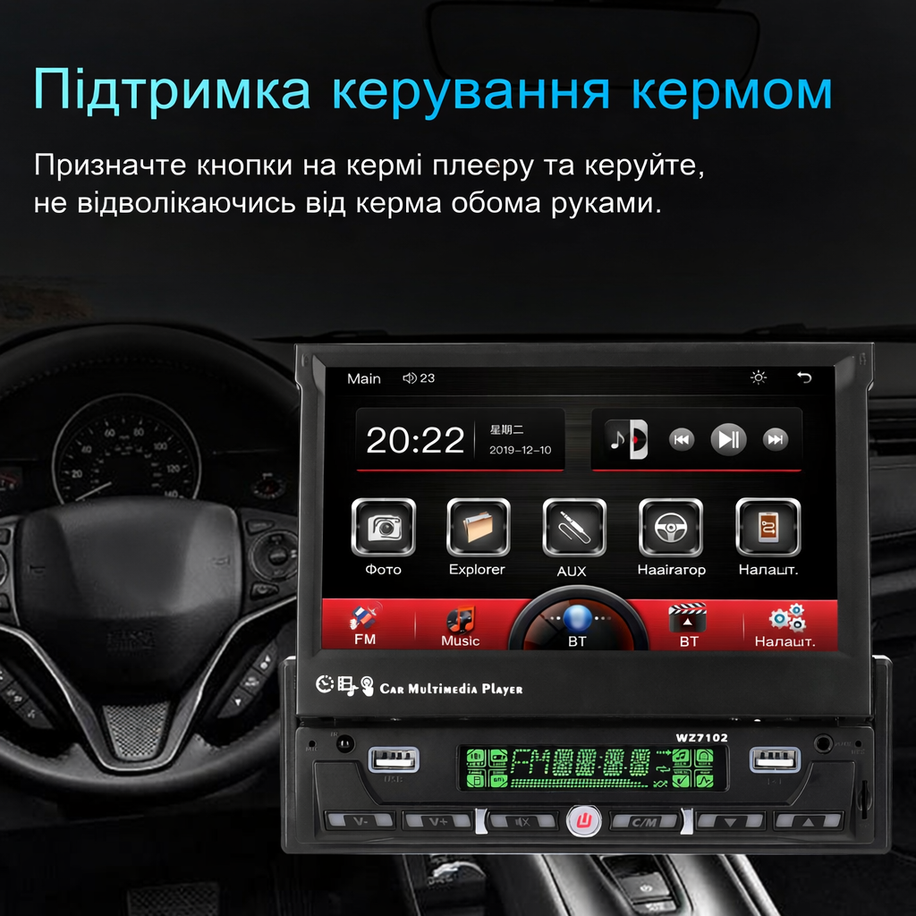 - -Висувний екран: 7-дюймовий екран з висувним механізмом забезпечує зручність використання і компактність.